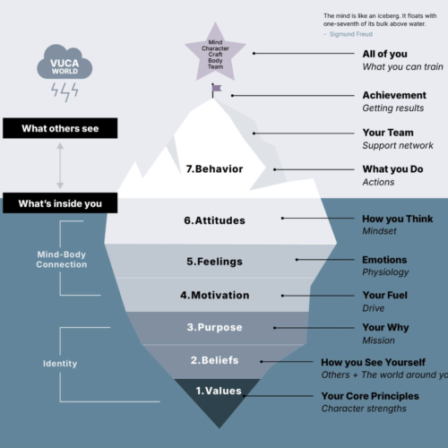🎯 Çoğumuz suyun üzerinde buzdağının küçük bölümü olan herkesin gördüğü kısımla, yani eylemler, söylemler, davranışlar, aksiyonlar ile ilgileniriz. Bunlara odaklanmayı tercih eder ve onları değiştirmeye gayret ederiz.